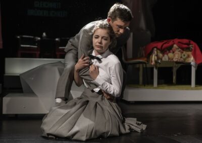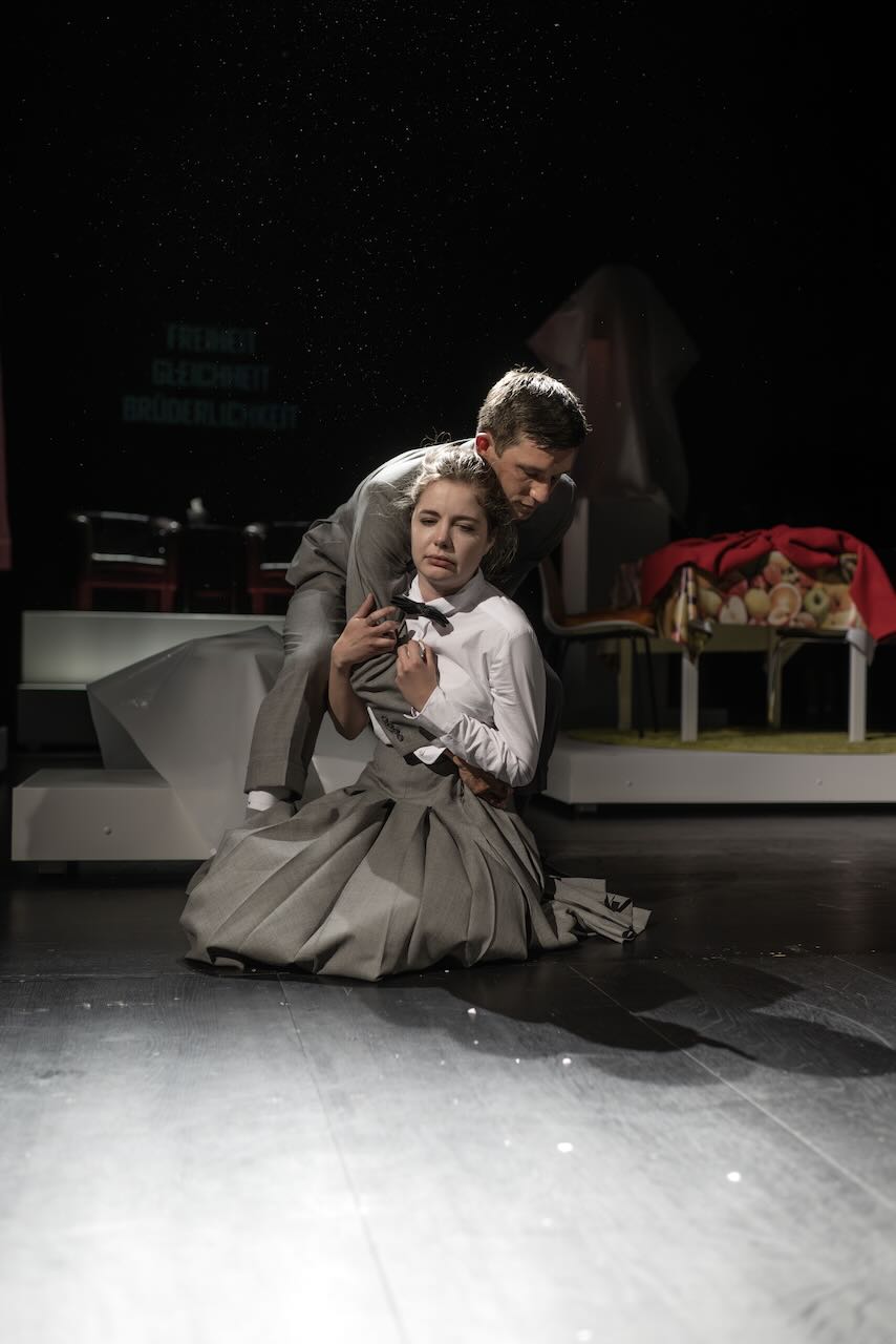 2021/2022 2022/2023 2023/2024 2024/2025 Kafka in Farbe Premiere 22.9.22 Solothurn «Kafka in Farbe» Max Merker & Aaron Hitz(Regie: Max Merker | Ausstattung: Martin Dolnik) © Joel Schweizer für TOBS joelschweizer.ch Wer hat Angst vor Virginia Woolf? Premiere 29.10.22 Solothurn «Wer hat Angst vor Viginia Woolf?» Edward Albee(Regie: Janusz Kica | Ausstattung: Karin Fritz) © Joel Schweizer für TOBS joelschweizer.ch Liebe Jelena Sergejewna Premiere 11.3.23 Solothurn «Liebe Jelena Sergejewna» Ljudmila Rasumowskaja(Regie: Katharina Rupp | Ausstattung: Karin Fritz) © Joel Schweizer für TOBS joelschweizer.ch Revolutionstrilogie Premiere 5.5.23 Solothurn «Revolutionstrilogie» Esteve Soler(Regie: Daniel Kunze | Ausstattung: Sophie Leypold) © Joel Schweizer für TOBS joelschweizer.ch